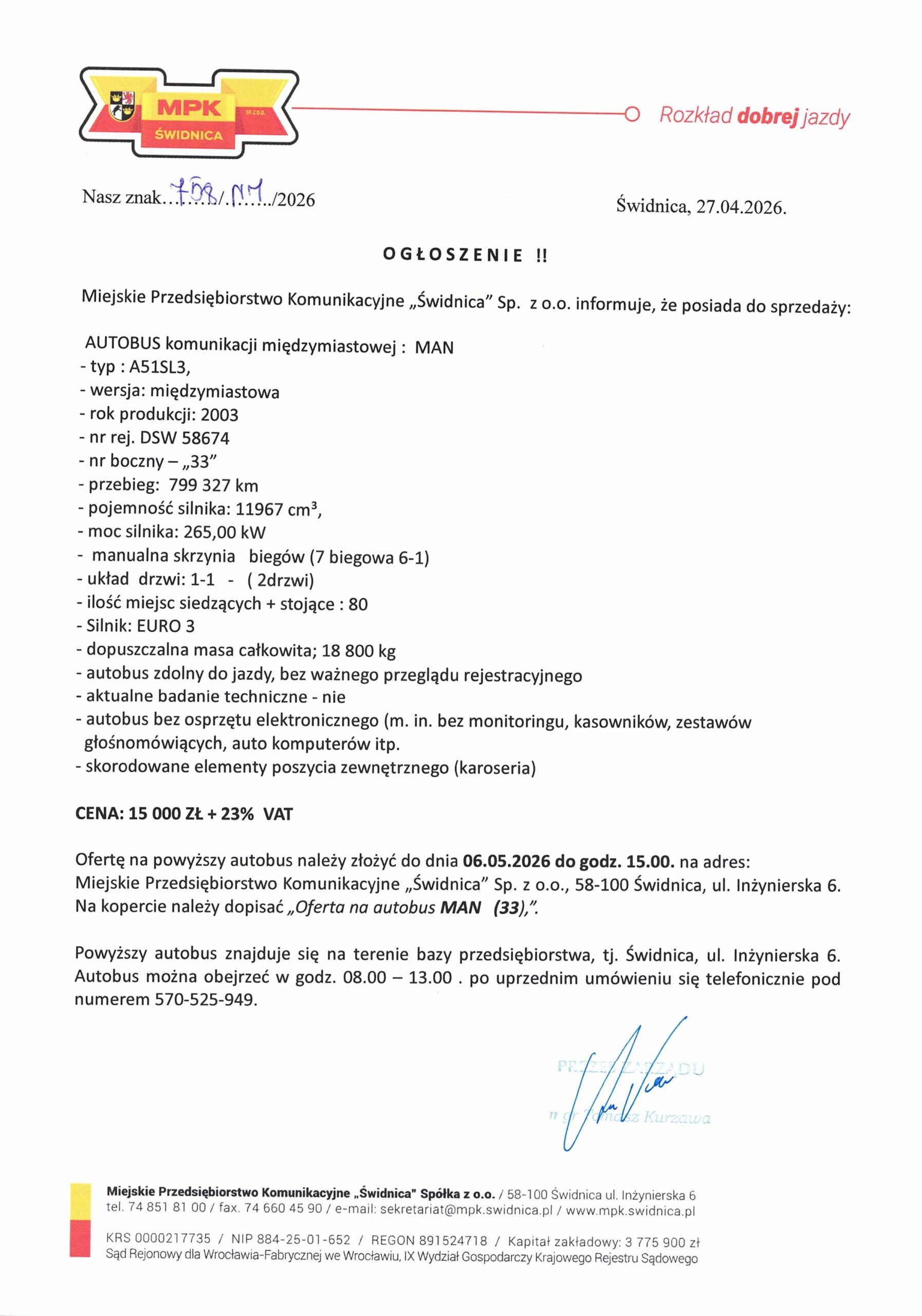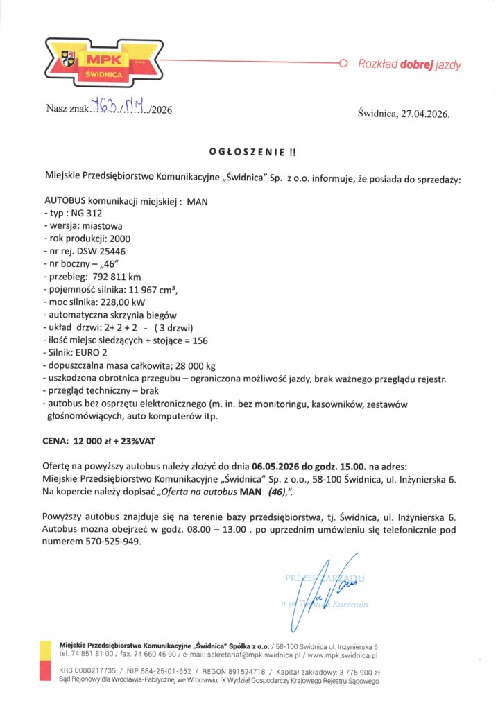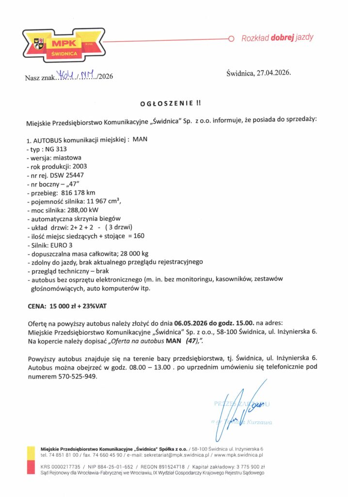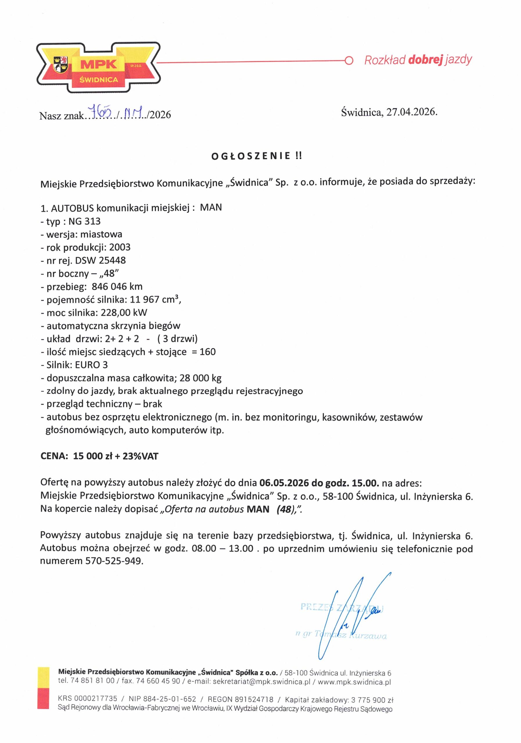 Miejskie Przedsiębiorstwo Komunikacyjne „Świdnica” Sp. z o.o. realizuje projekt