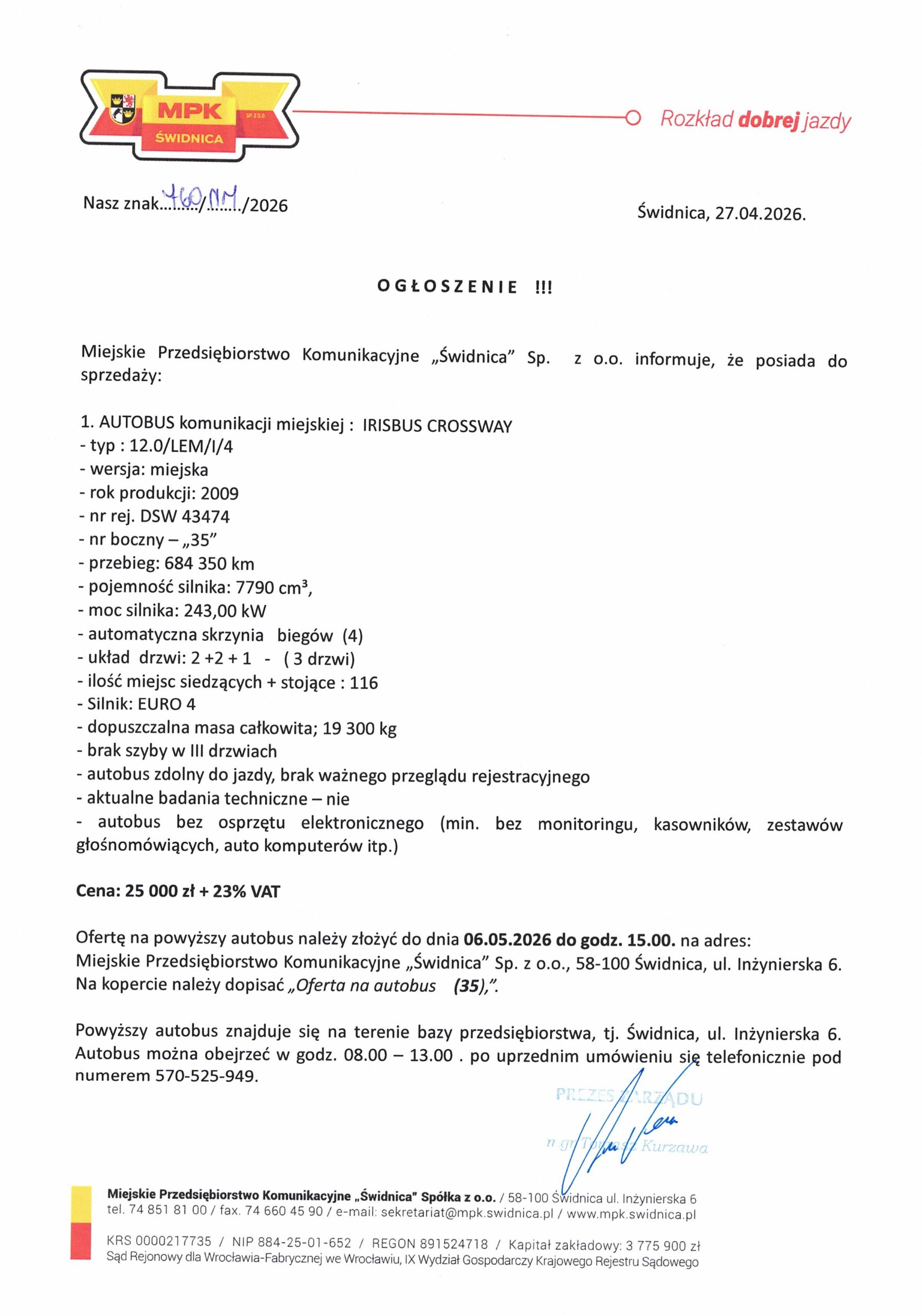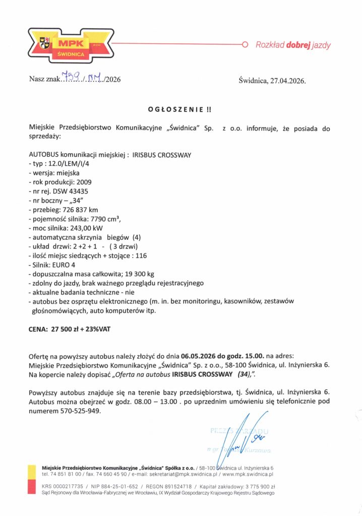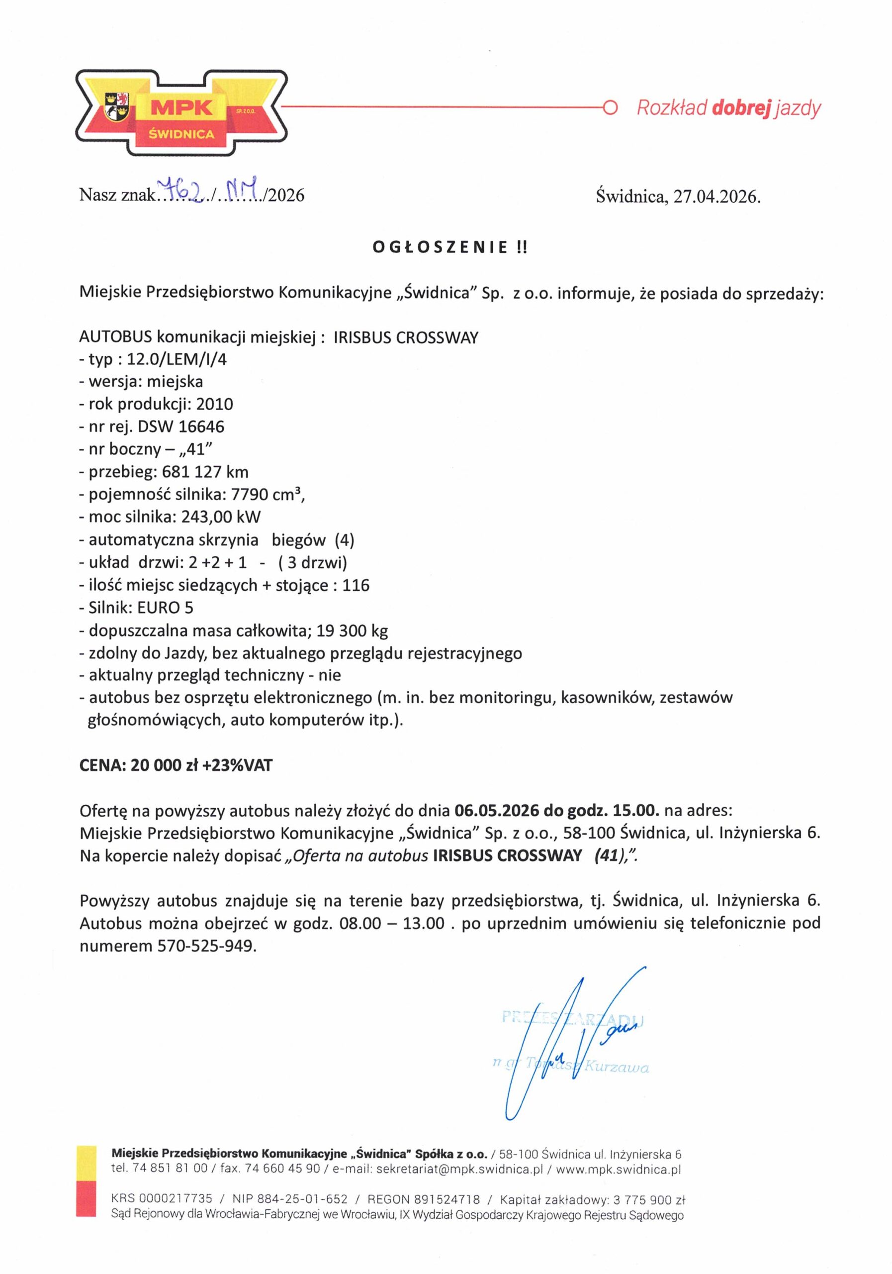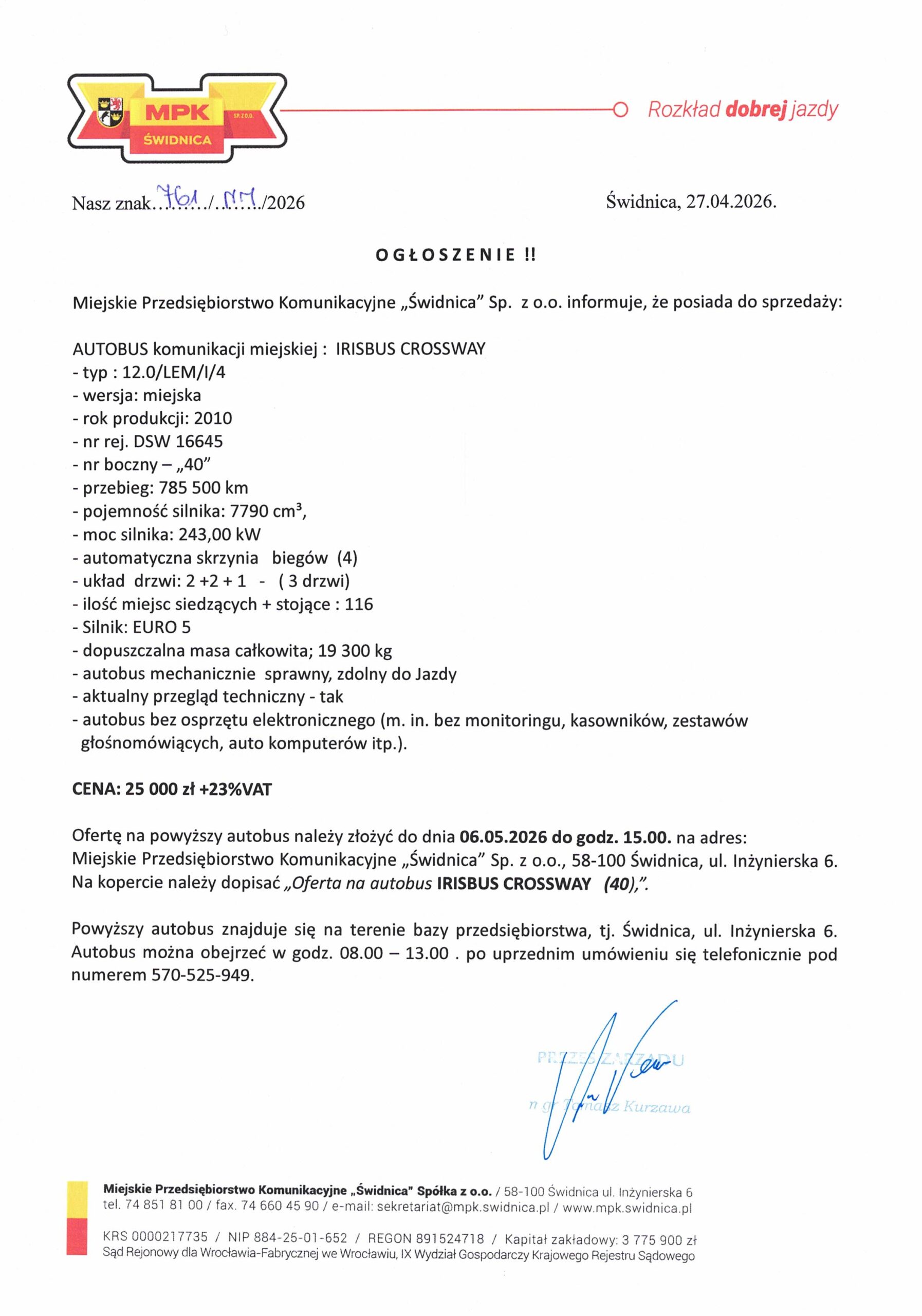 Miejskie Przedsiębiorstwo Komunikacyjne „Świdnica” Sp. z o.o. realizuje projekt